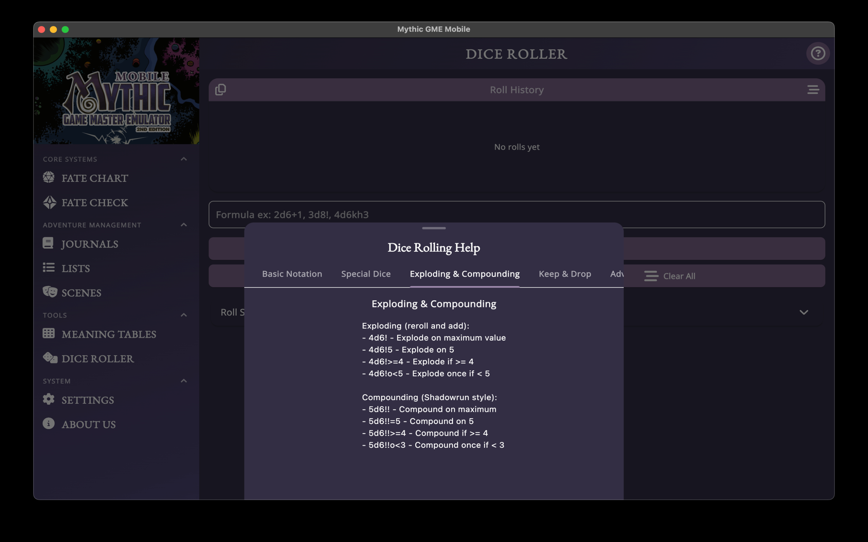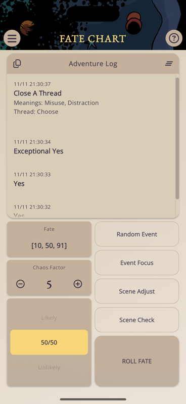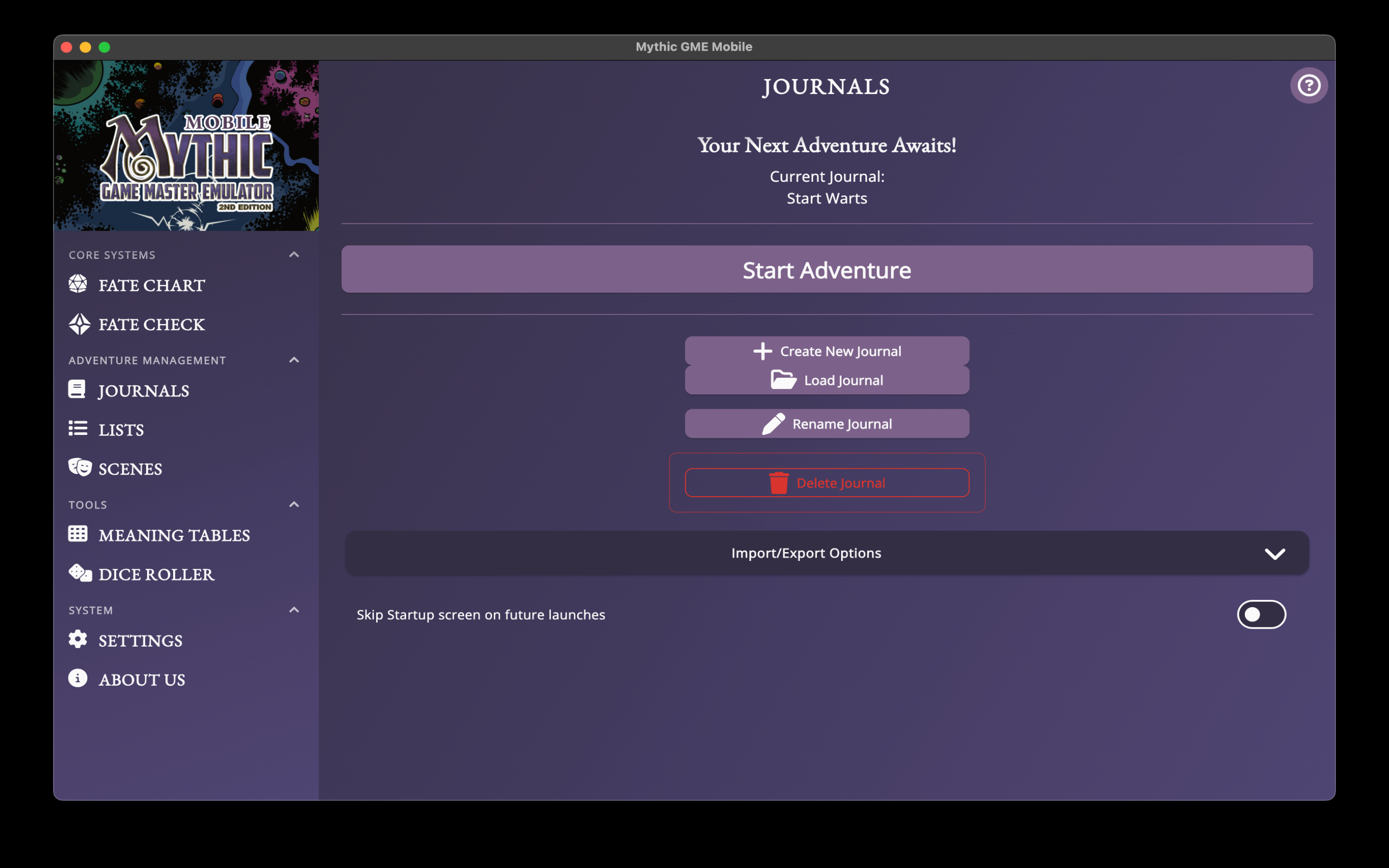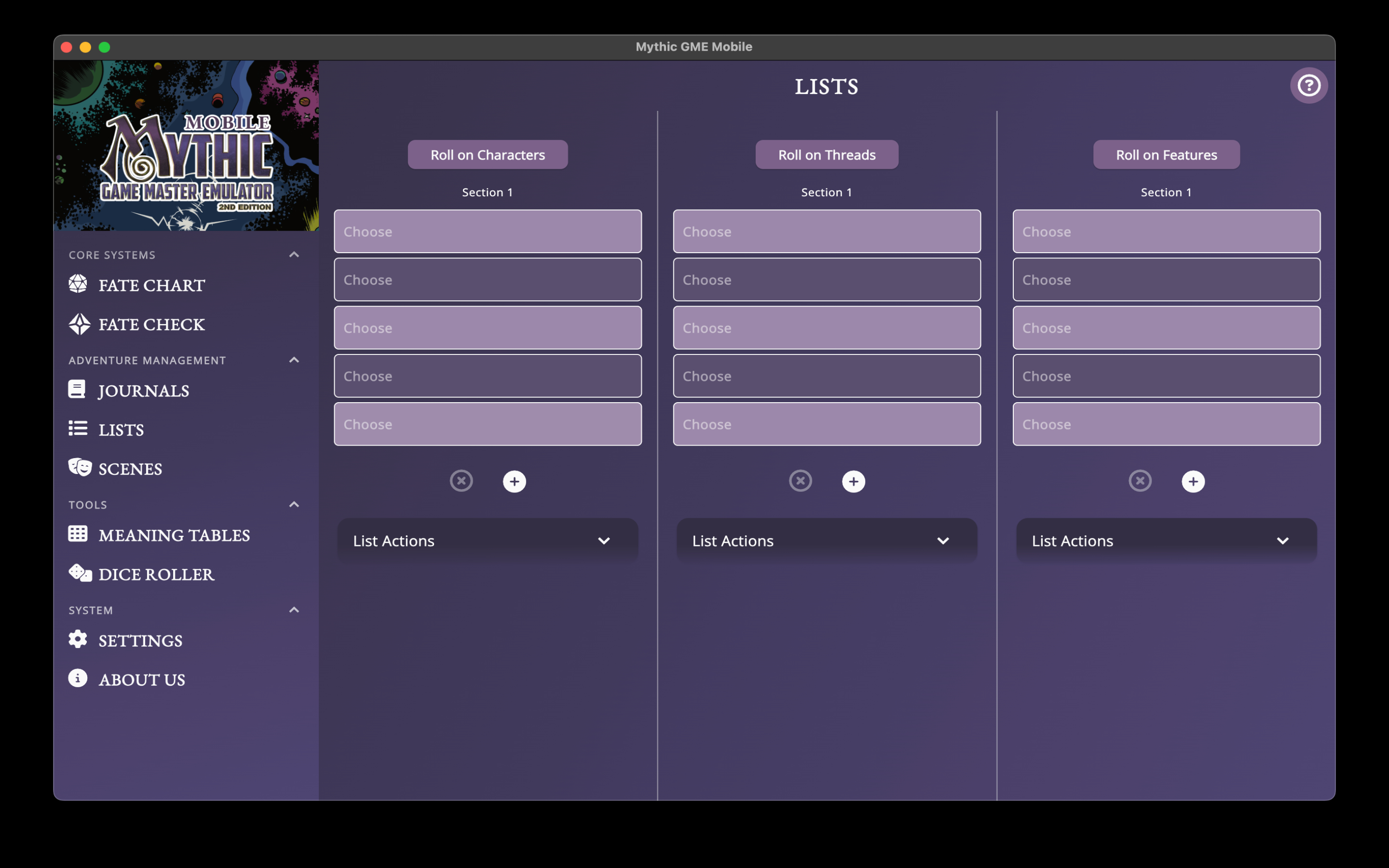 A comprehensive cross-platform implementation of Word Mill Creative's Mythic Game Master Emulator 2nd Edition. Built with Flutter using MVVM architecture and Provider state management, this app brings the power of Mythic GME to mobile devices and desktops.
